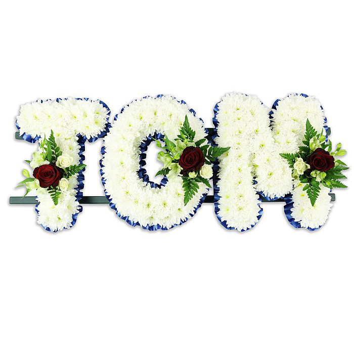 Honour a cherished memory with the Custom TOM Tribute from Limehouse Florist in Limehouse. This elegant funeral letter tribute is lovingly crafted with a bed of fresh white chrysanthemums, accented by rich red roses and delicate white freesias for a graceful, heartfelt display. Ideal for funerals, memorials or graveside tributes, it offers a dignified way to share your deepest condolences and celebrate a life well lived.
